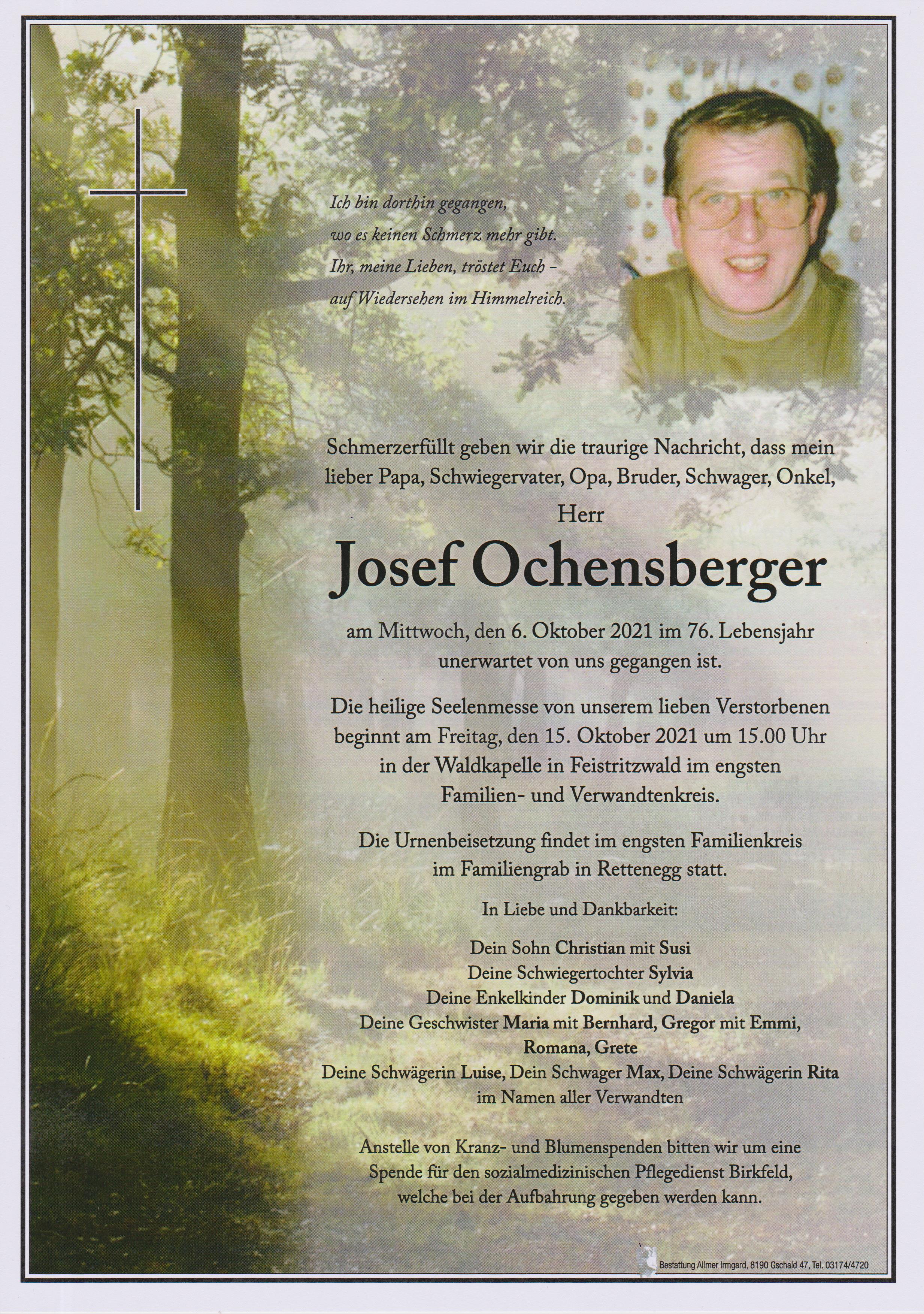 Ruhe in Frieden Fam. Ochensberger Reinhold u. Martin
