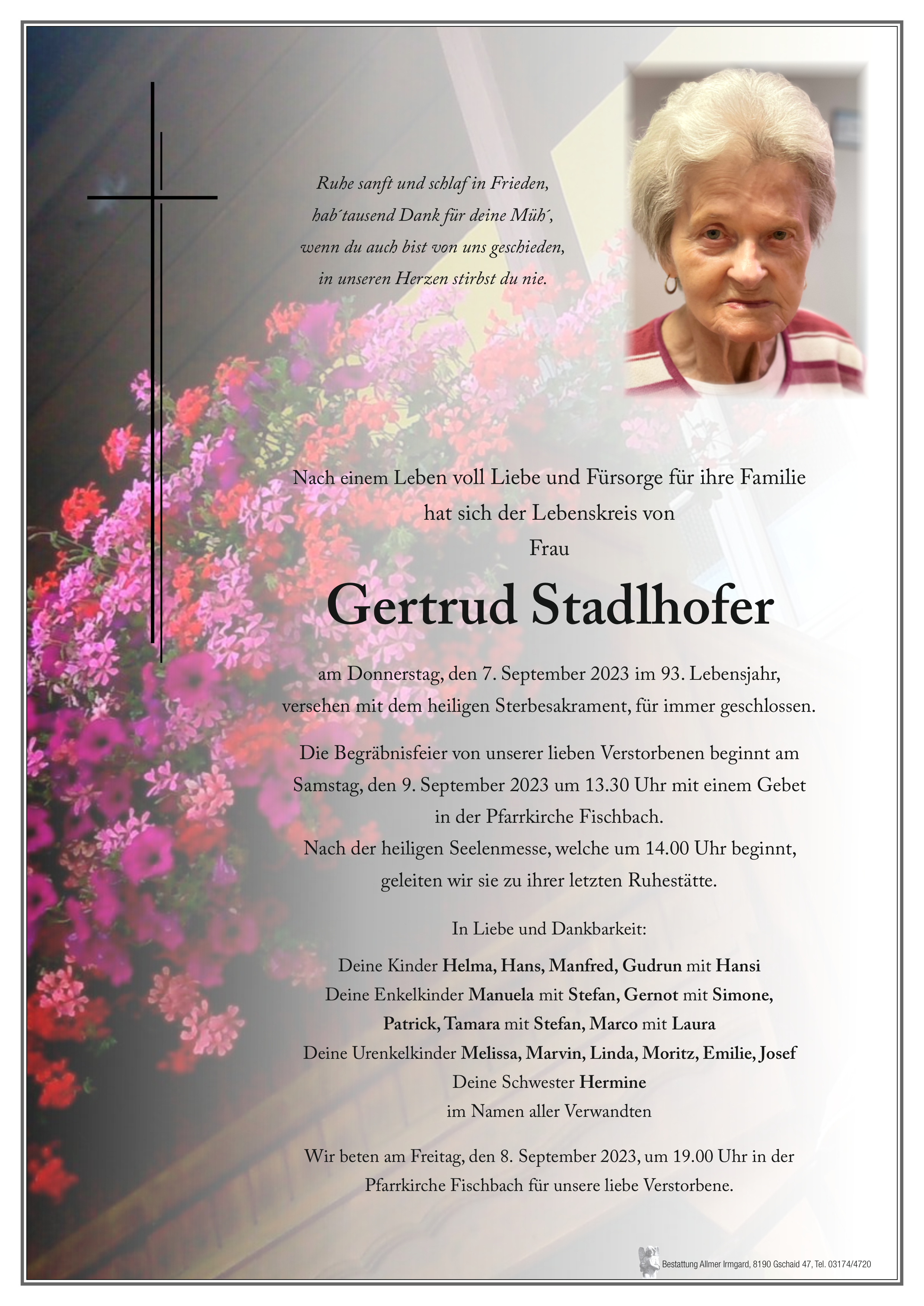 Ruhe sanft in Gottes Hand! Aufrichtige Anteilnahme! Josefa Froihofer/Ochsenhofer