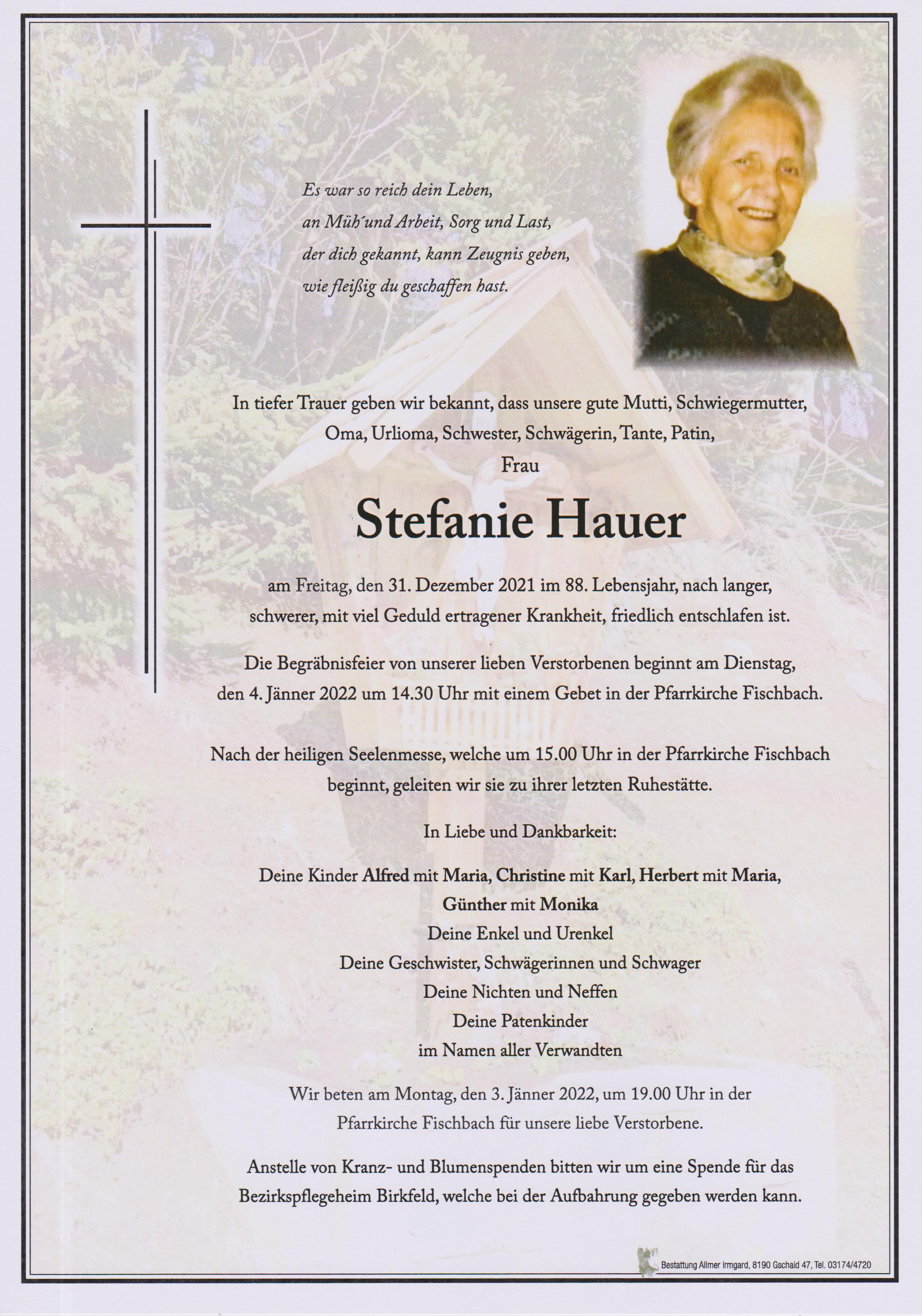 Stefanie Ruhe in Frieden. Aufrichtiges Beileid von Filzmoser Hilde samt Familie