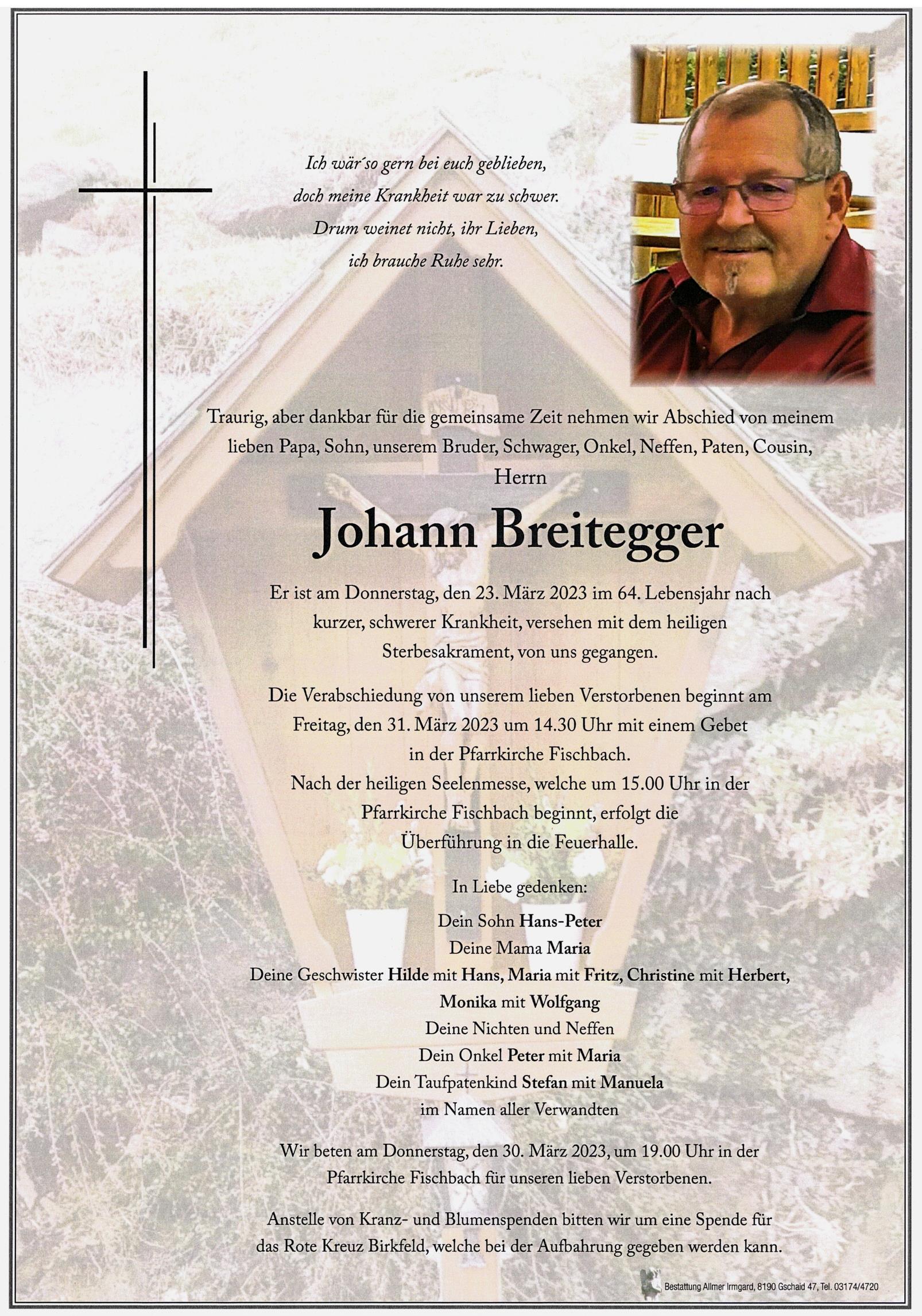 Lieber Johann Ruhe in Frieden. Den Angehörigen unser tiefstes Beileid. Fam. Wiesenhofer