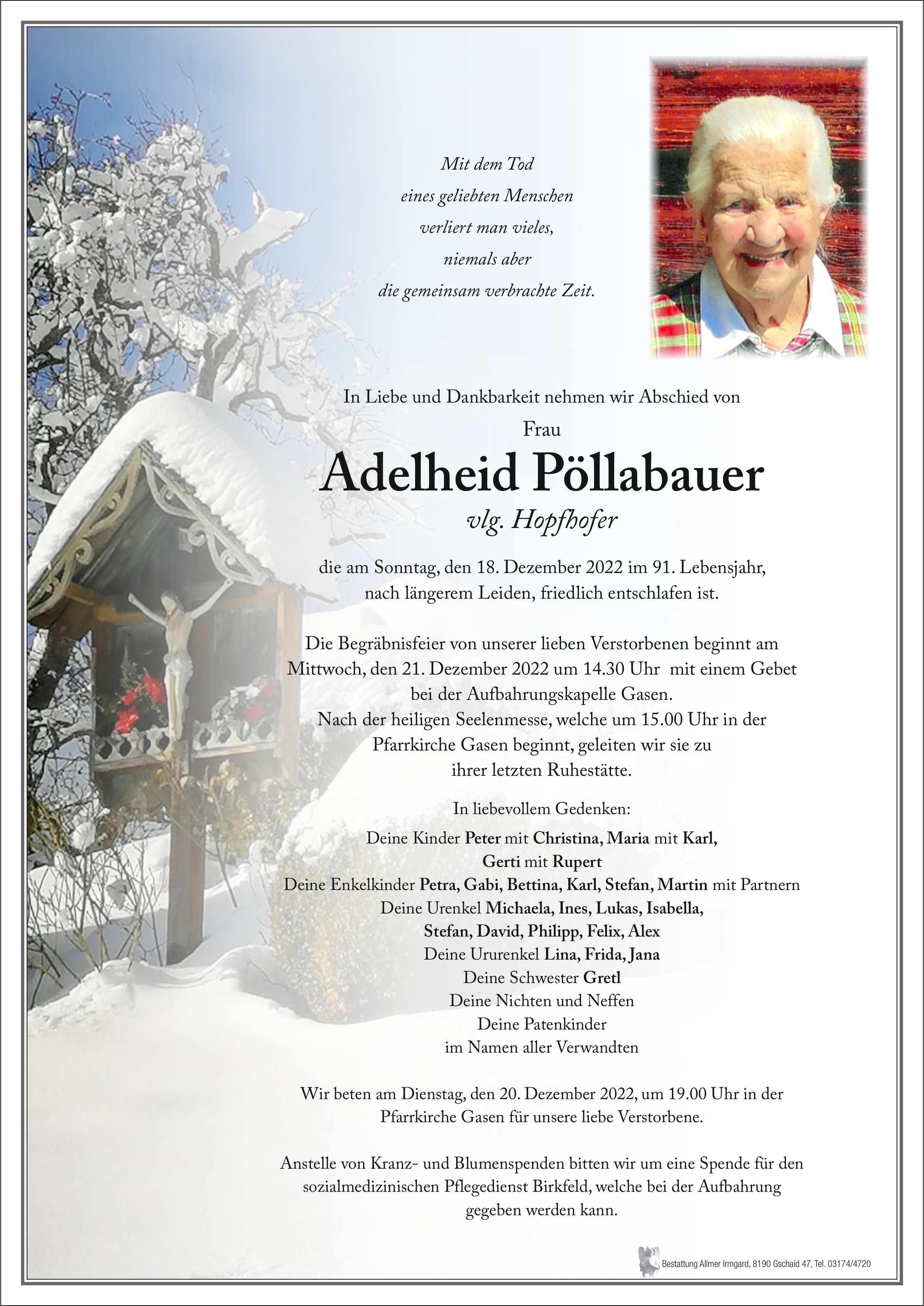 In lieber Erinnerung, deine Nachbarn Familie Pöllabauer