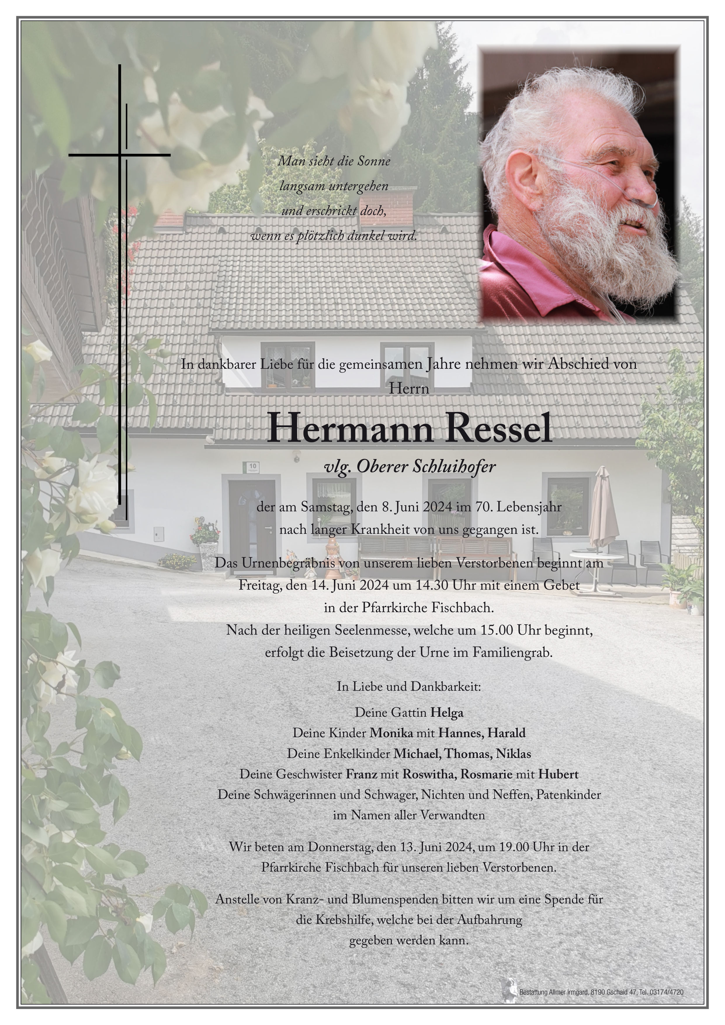 Ruhe in Frieden Hermann. Aufrichtige Anteilnahme der Trauerfamilie . Rita Tiefengraber