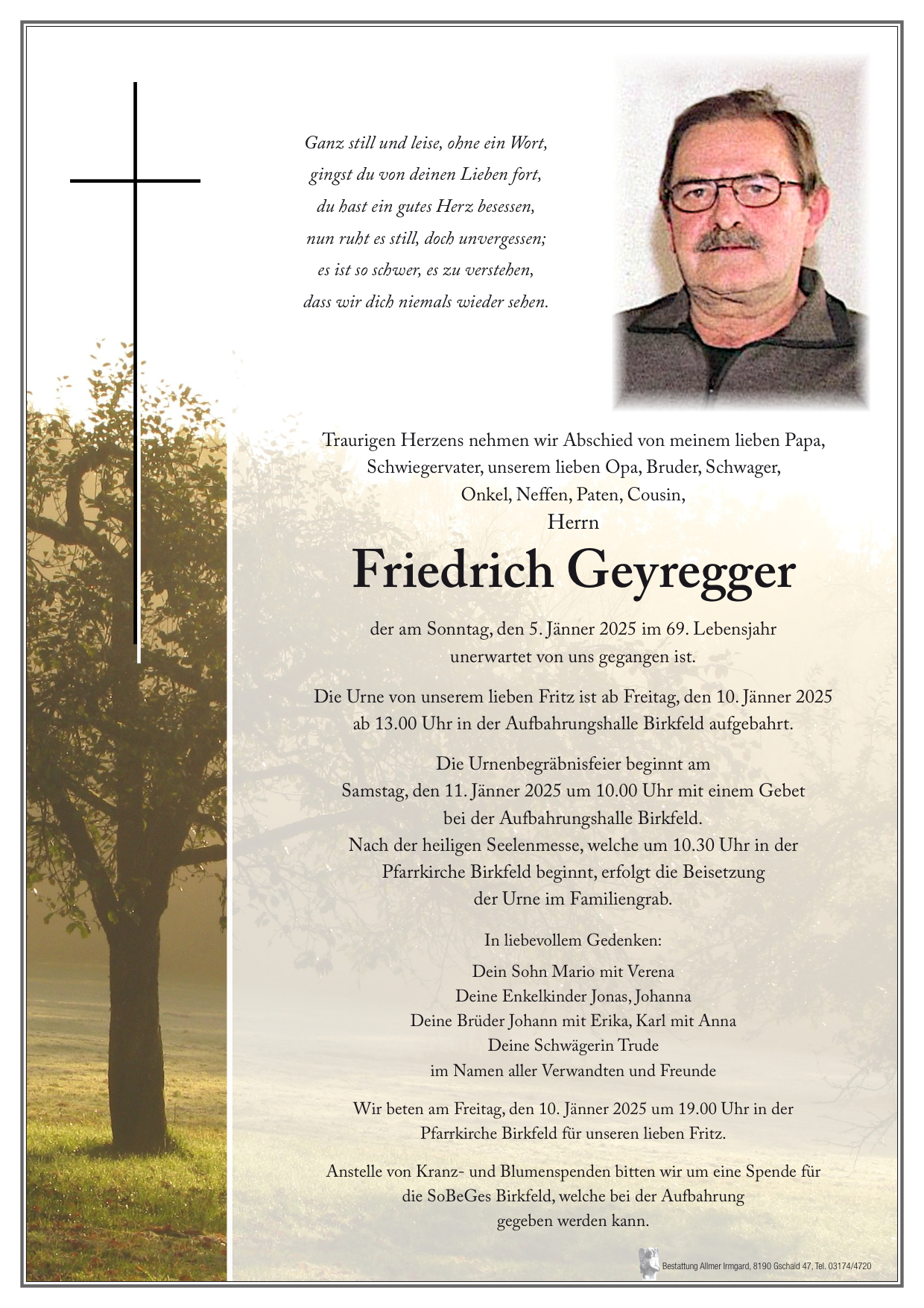 Ein letztes Pfiati lieber Cousin, ruhe in Frieden! Aufrichtiges Beileid der Familie. Hermi & Georg