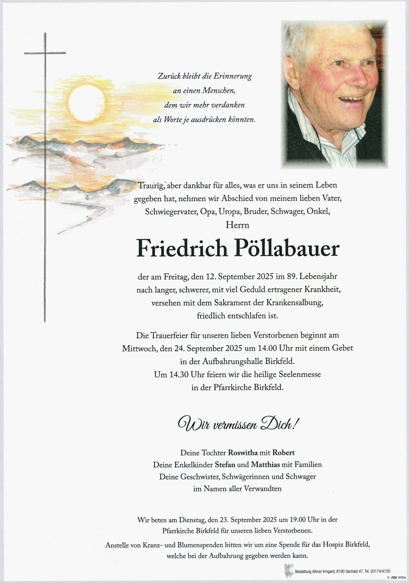Unser Aufrichtiges Beileid, lieber Fritz! Gottfried und Maria Arbesleitner