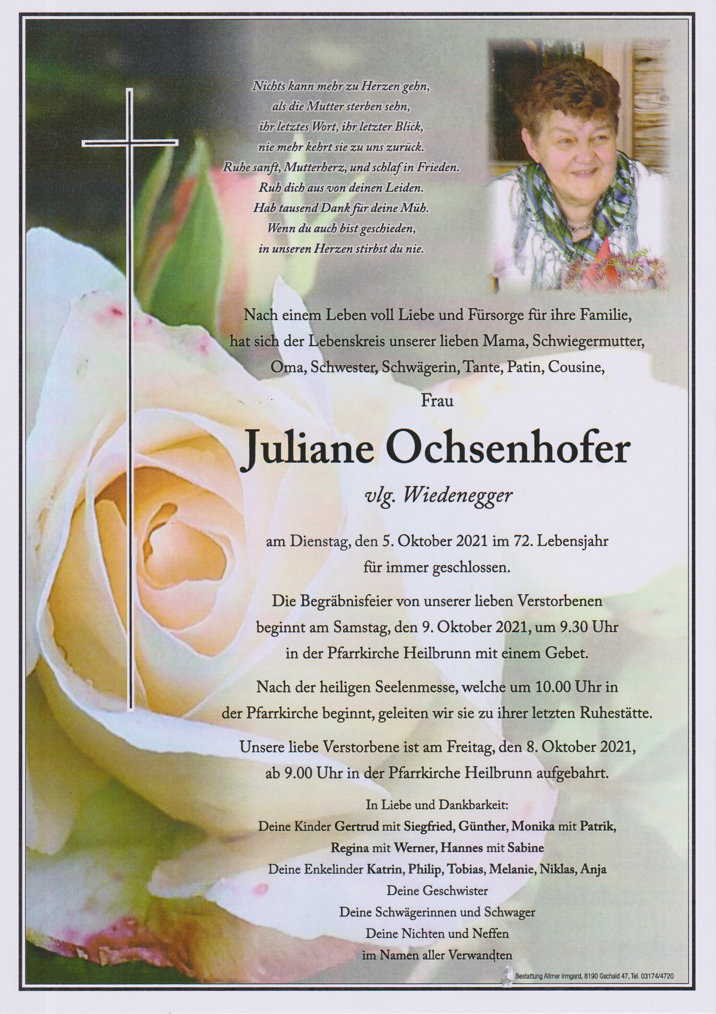 Mein herzliches Beileid für Euch Alle ! Ruhe in Frieden liebe Juliane .Hermi Käfer