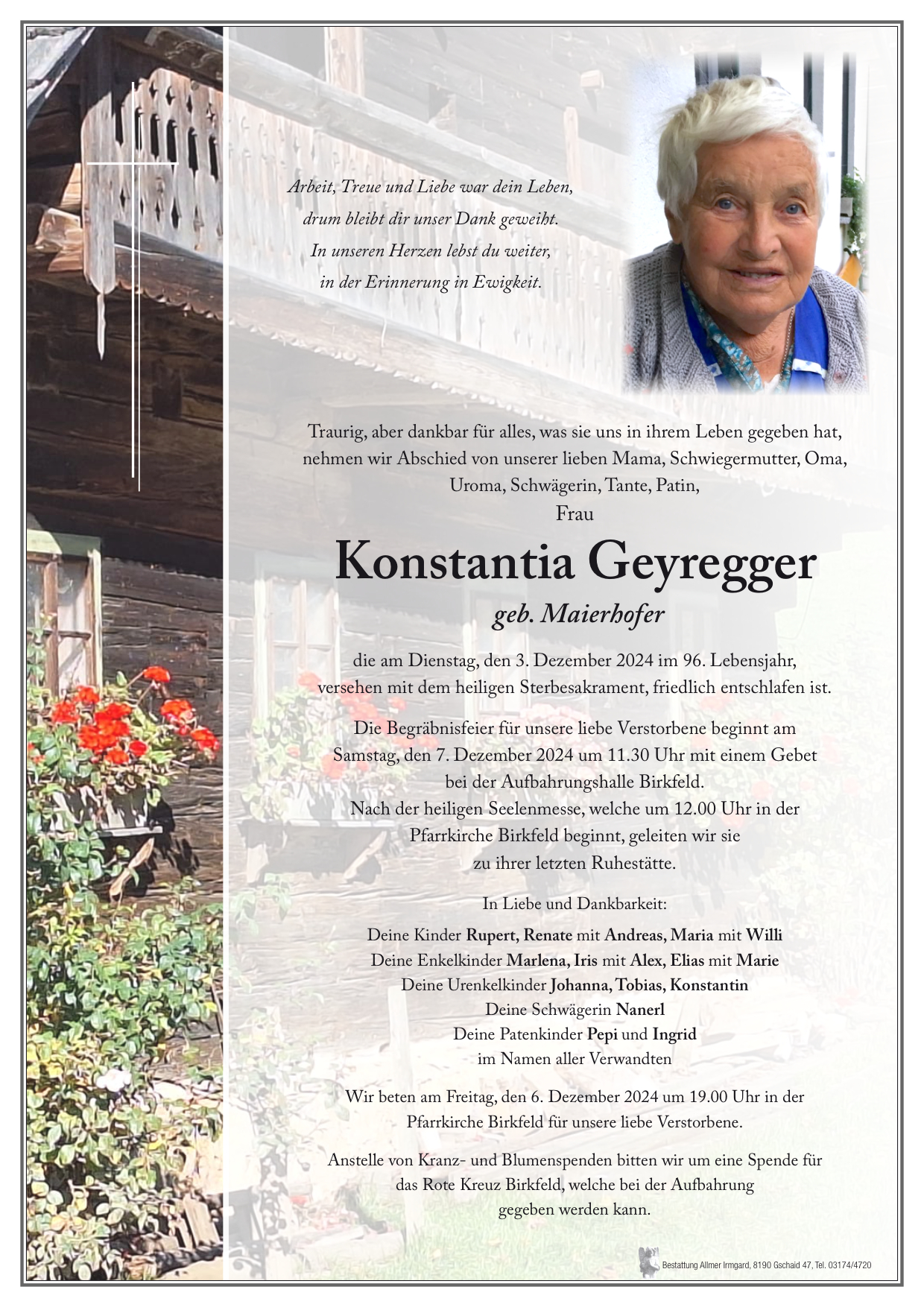 Ein Licht für die letzte Reise. Aufrichtige Anteilnahme von Familie Hans und Erika Geyregger.