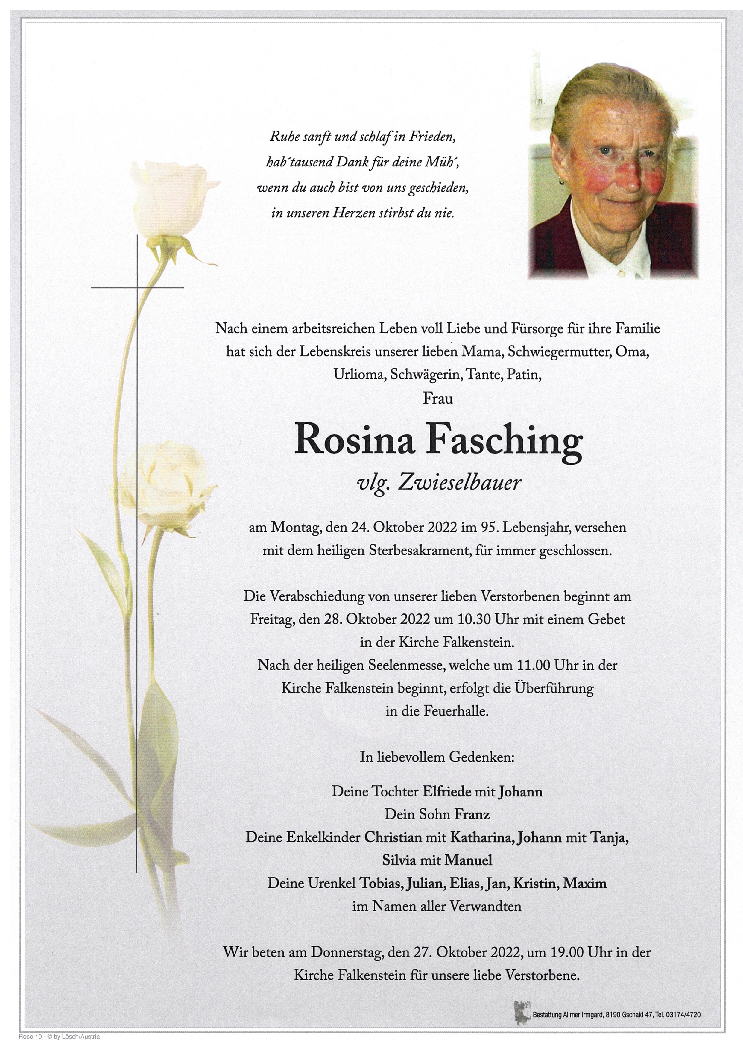Liebe Tante Rosi, letzte Grüße, es gibt ein Wiedersehen! Dein Neffe Peter.
