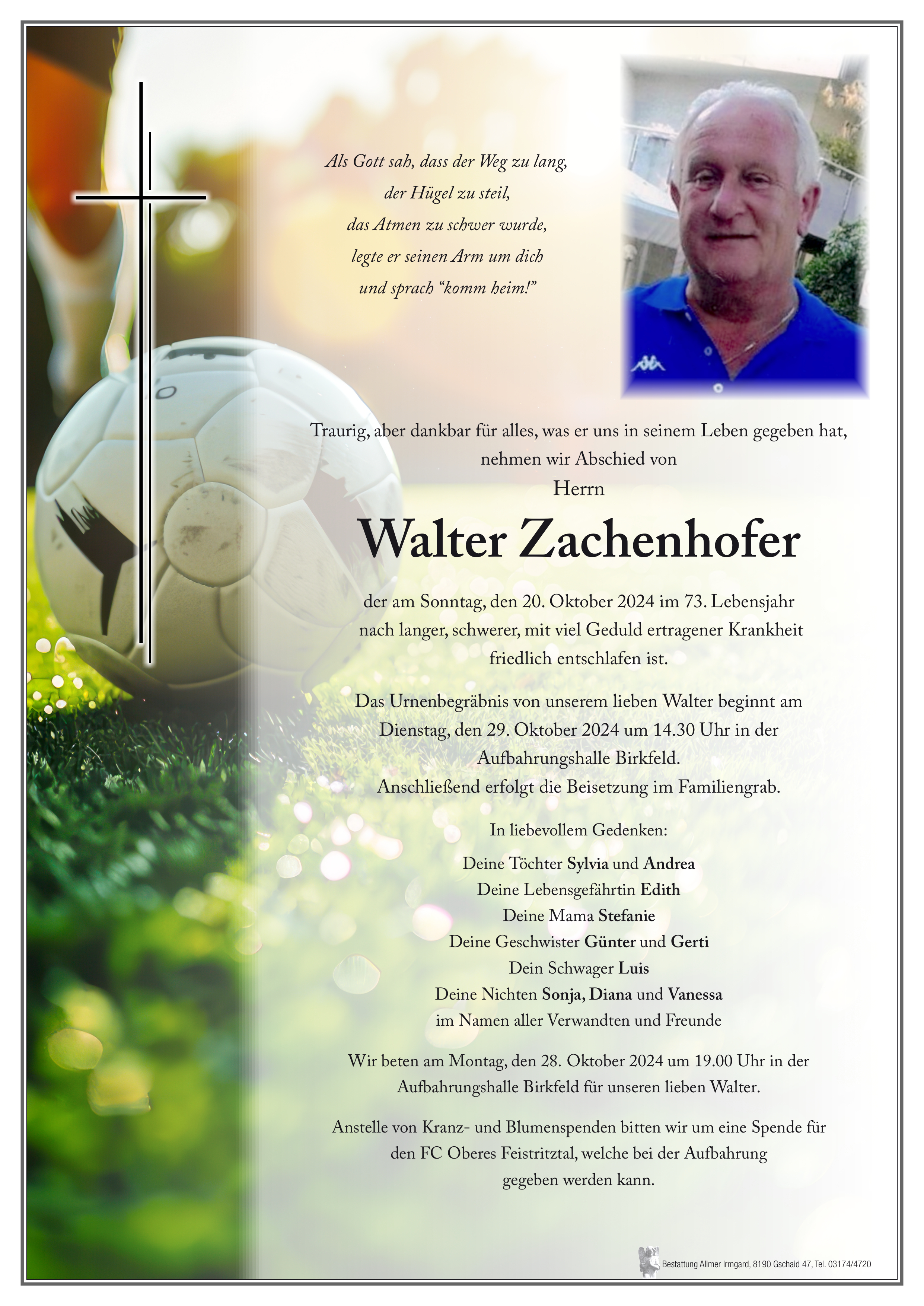 Unser aufrichtiges Beileid der Familie! Ruhe in Frieden und das ewige Licht soll dir leuchten lieber Walter!Bert und Monika Rozanek
