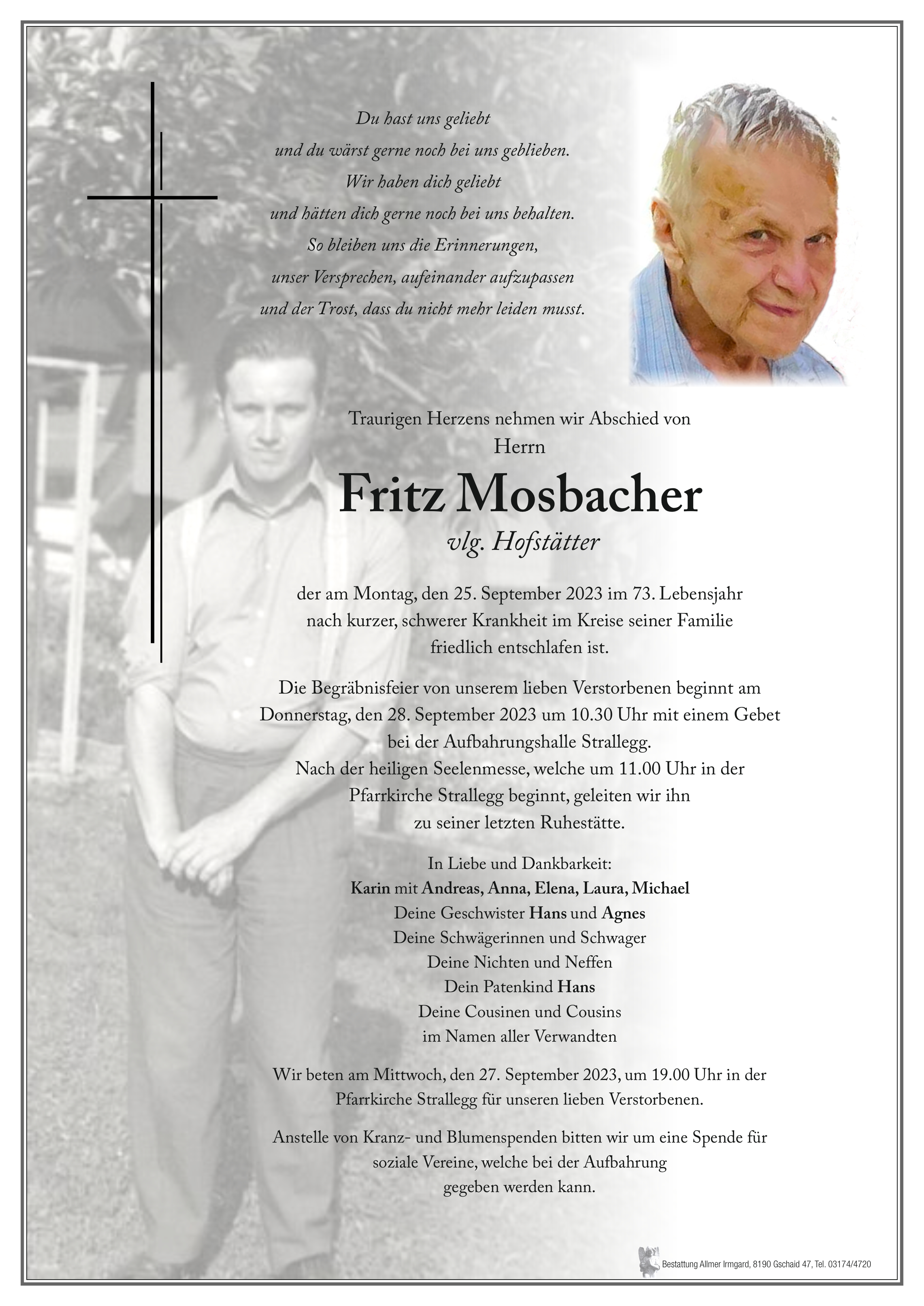 Ruhe in Frieden, lieber Fritz! Deine Cousine Grete Handler