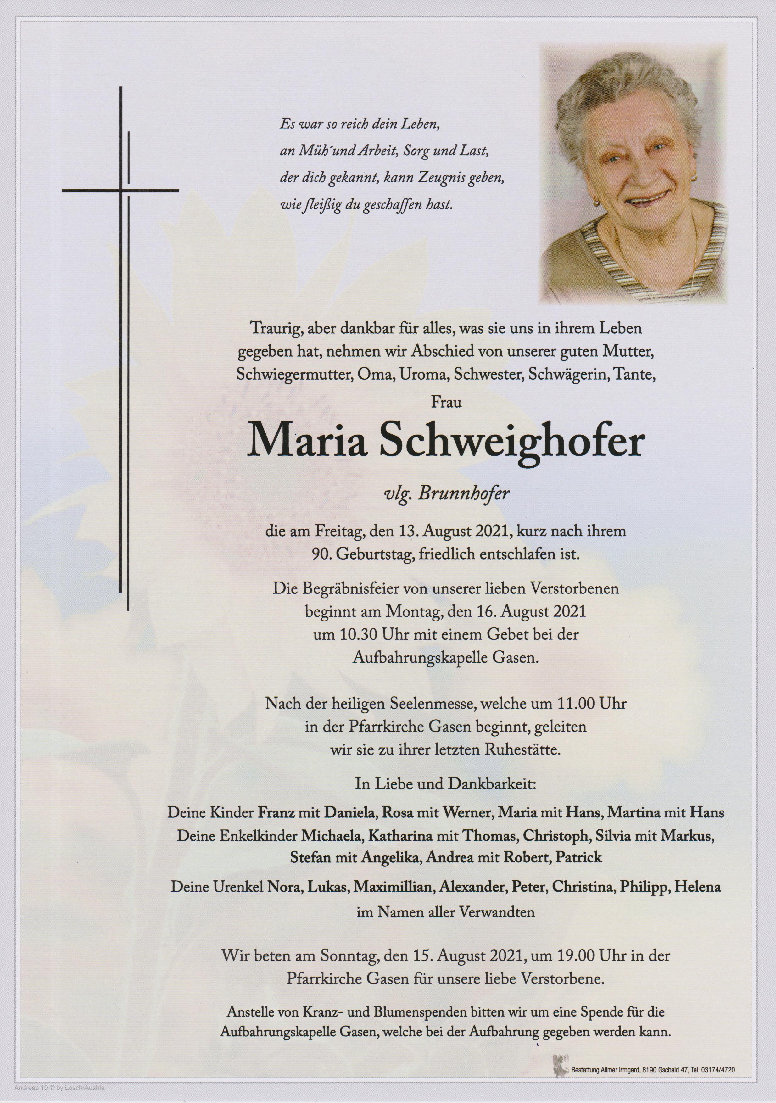 Herzliches Beileid entbietet Neffe Herbert mit Familie.