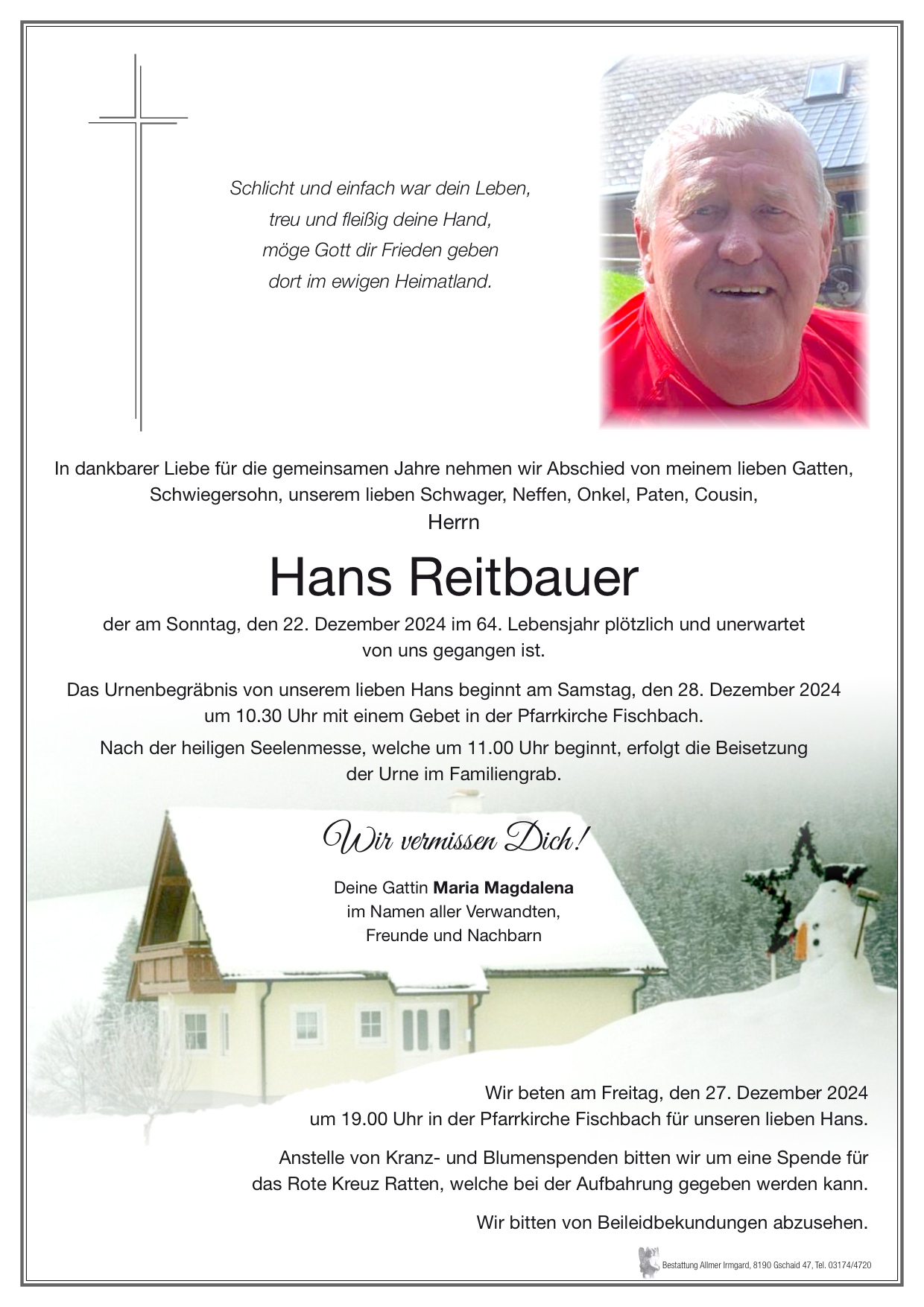 Ruhe in Frieden Hans! Dein Schwager Sepp