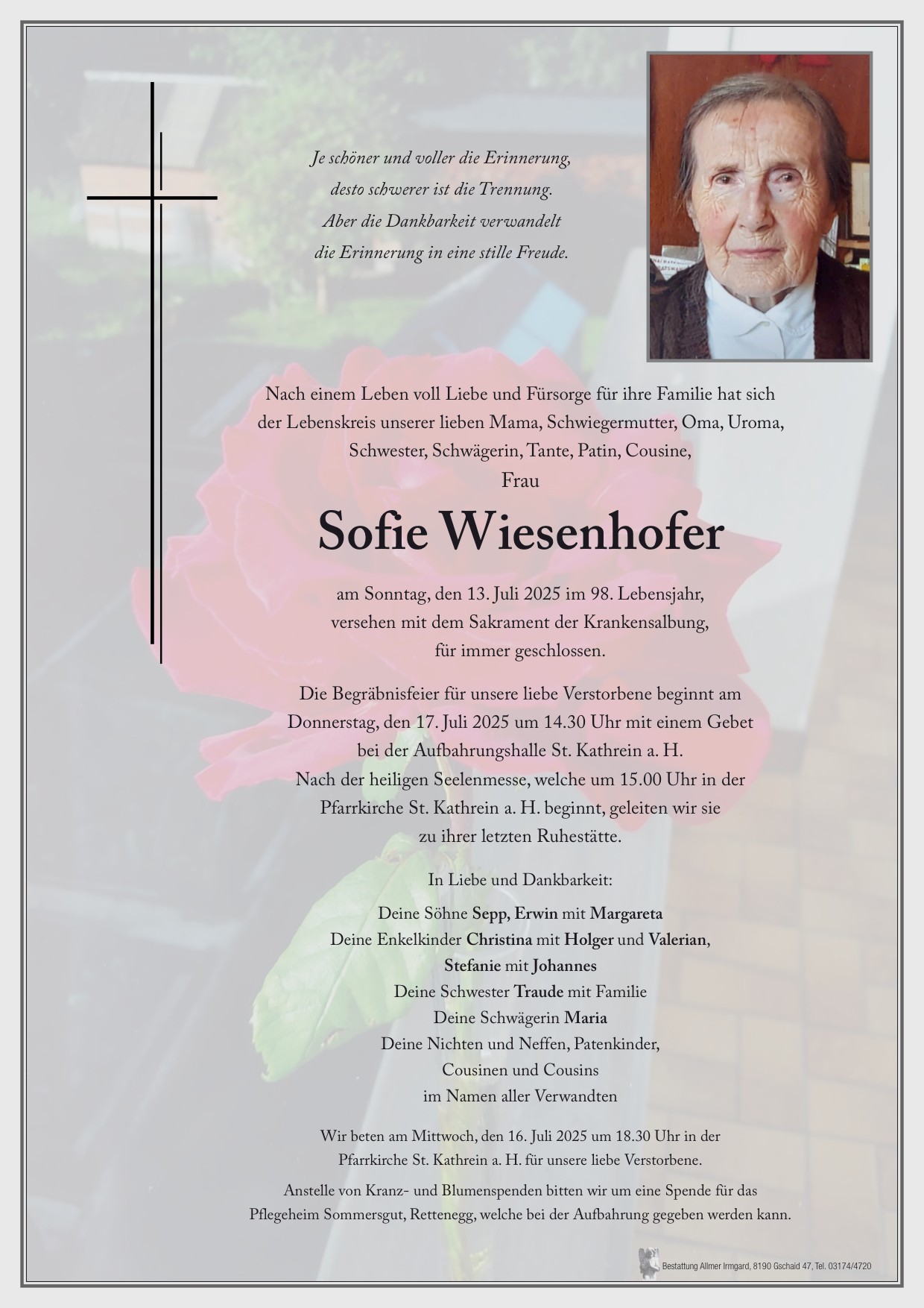 Mein aufrichtiges Beileid der Trauerfamilie ,Ruhe in Frieden liebe Sofie ,ein Licht leuchtet für Dich, von Hermine Friesenbichler