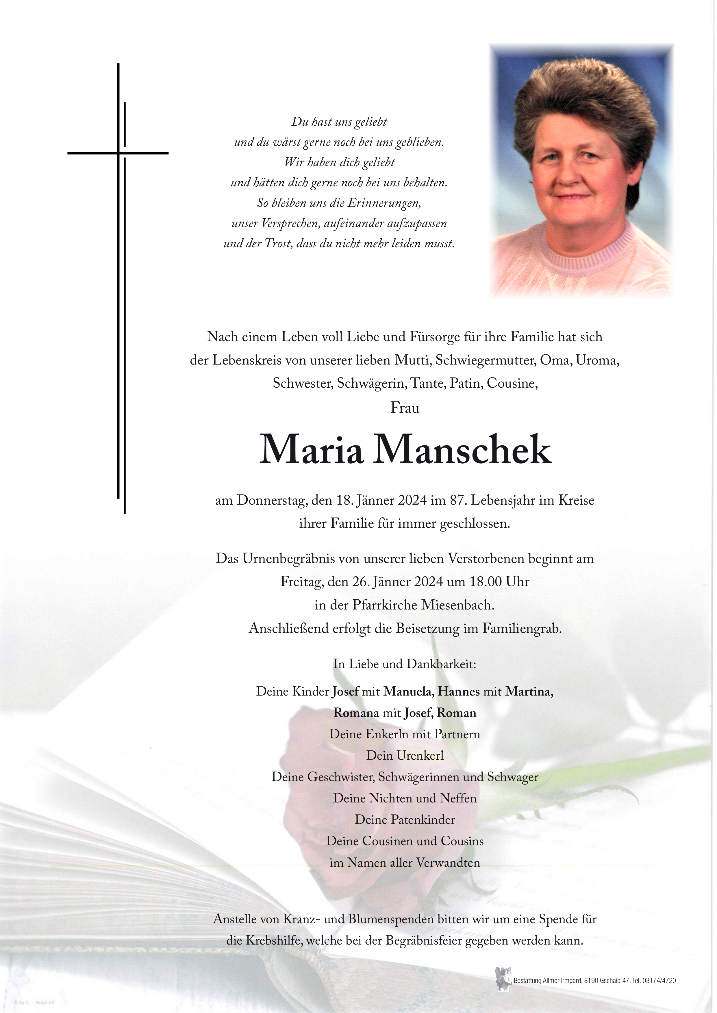 Lieber Sepp, liebe Familie Manschek! Meine aufrichtigste Anteilnahme, Othmar Sorger,Riegersburg