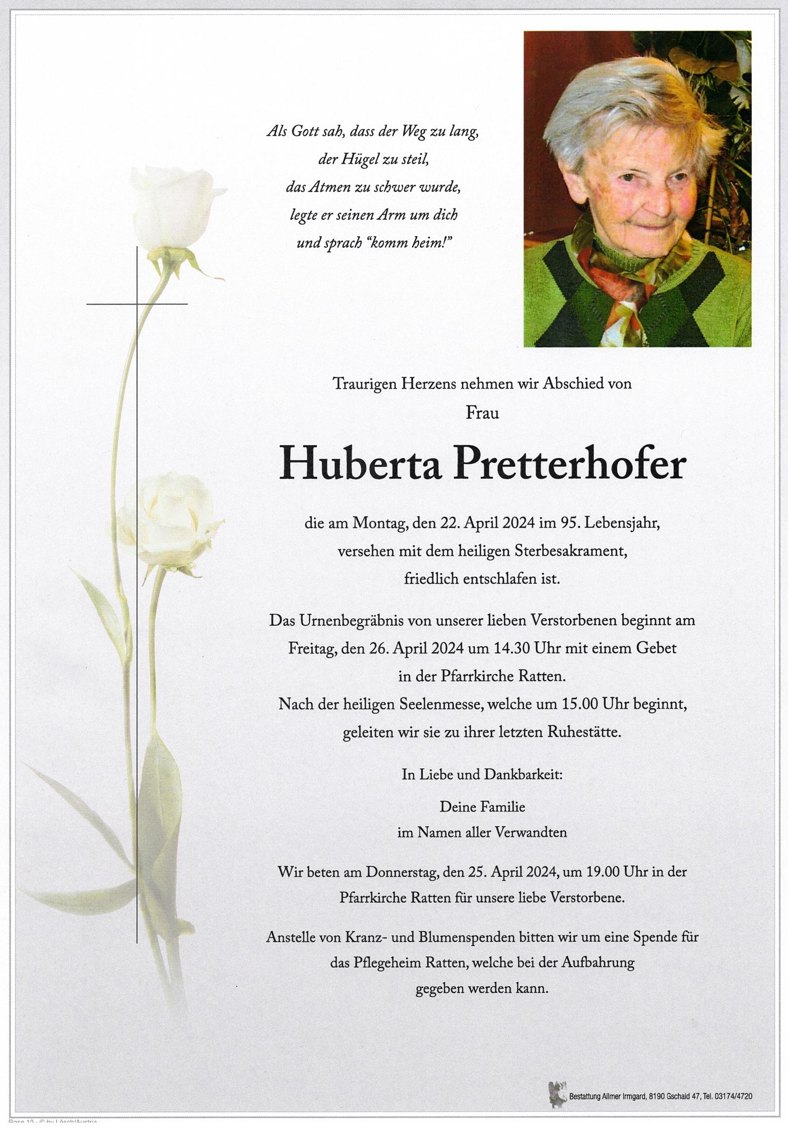 Ruhe in Frieden Liebe Frau Pretterhofer und aufrichtige Anteilnahme der Familie!