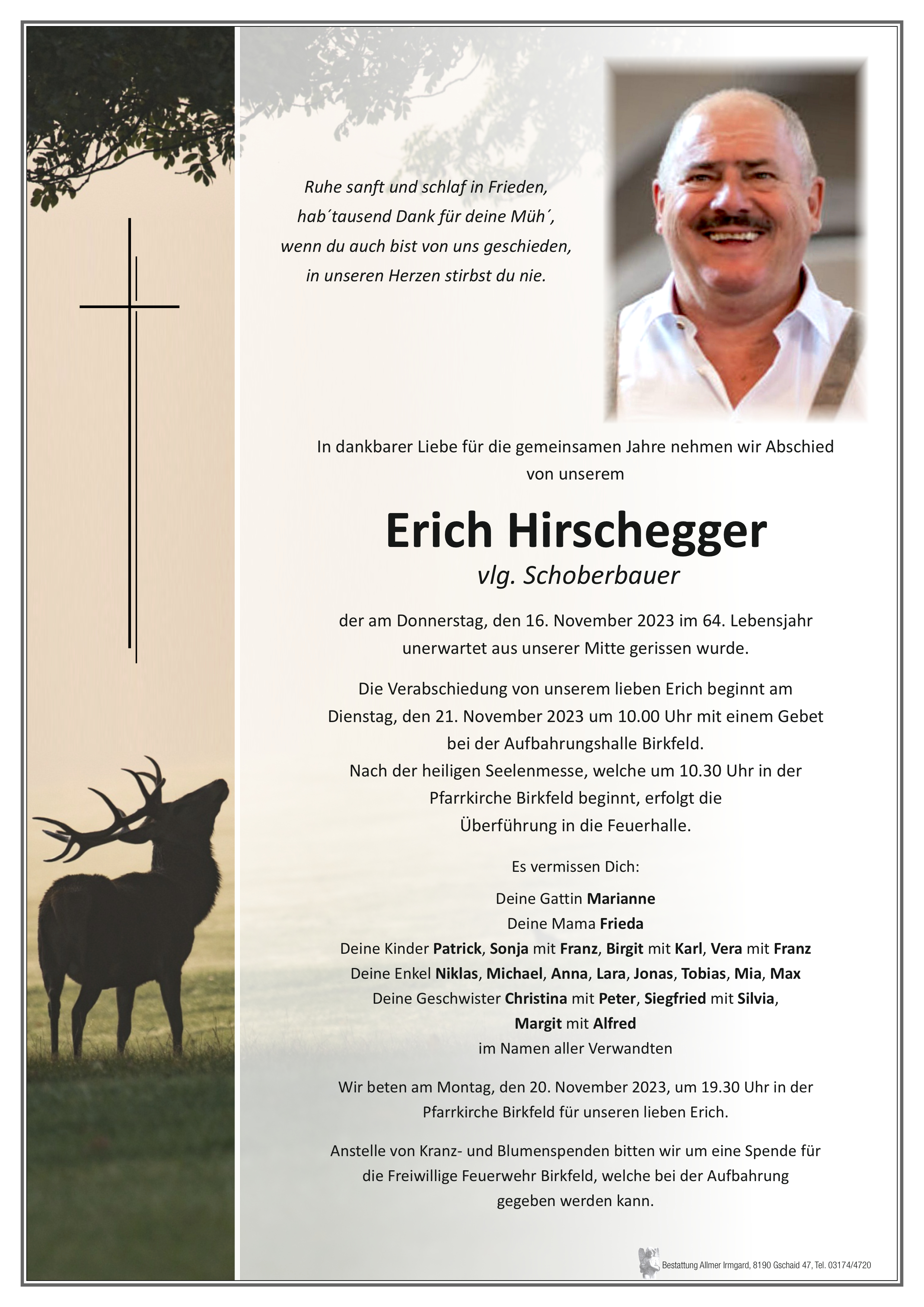 Aufrichtige Anteilnahme der Familie Ruhe sanft in Gottes Hand lieber Erich .Franz und Maria Buchegger