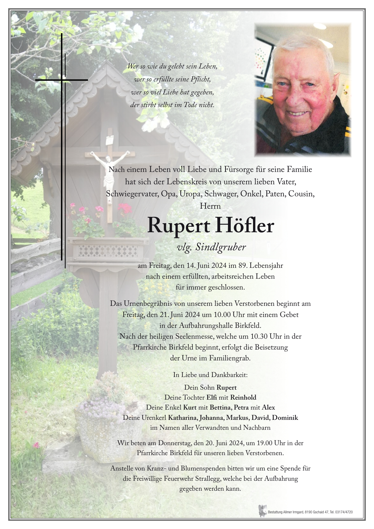 Unser Aufrichtiges Beileid von Hubert Höller und Familie