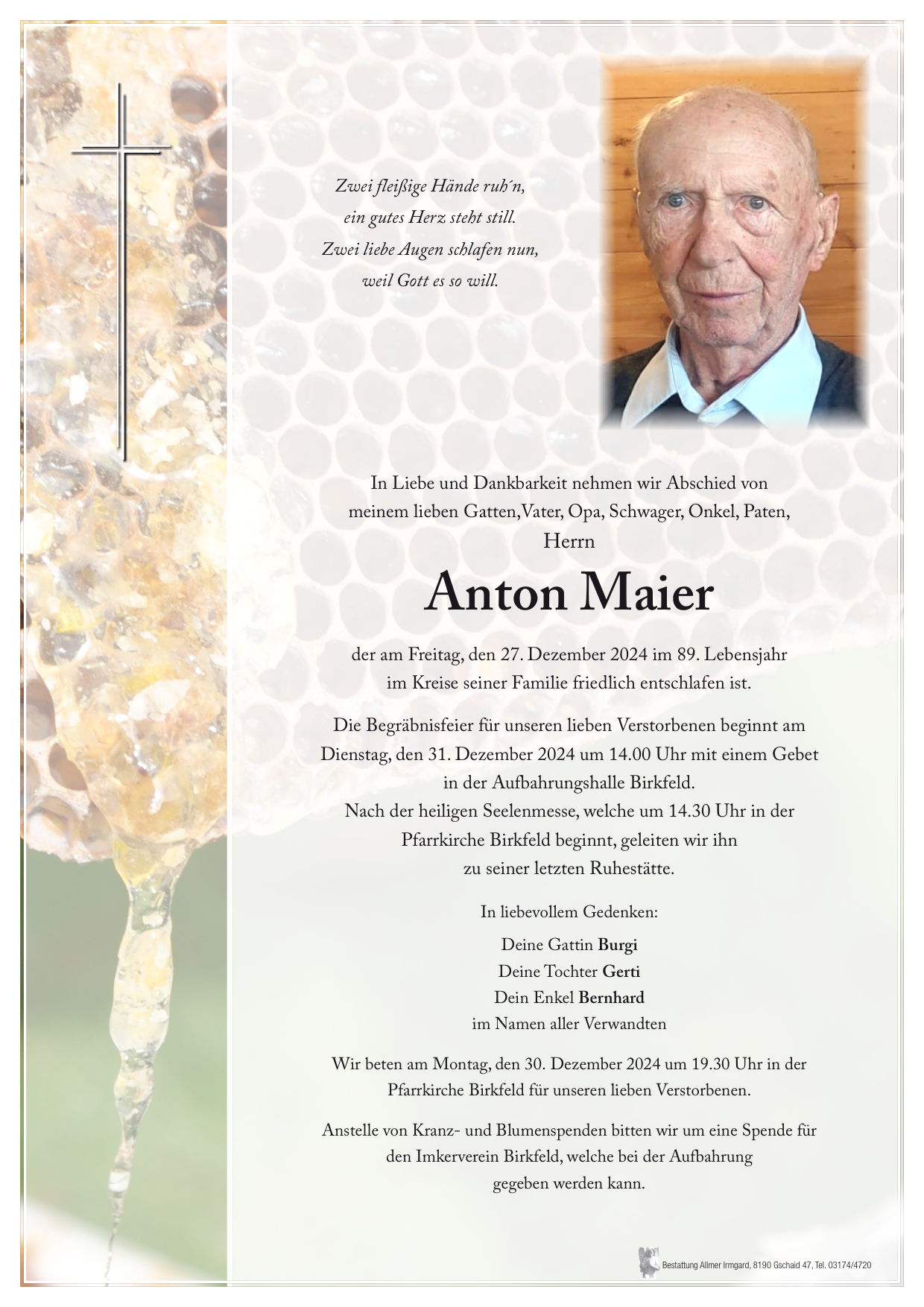 Unser aufrichtiges Beileid Anton und Marianne Maier