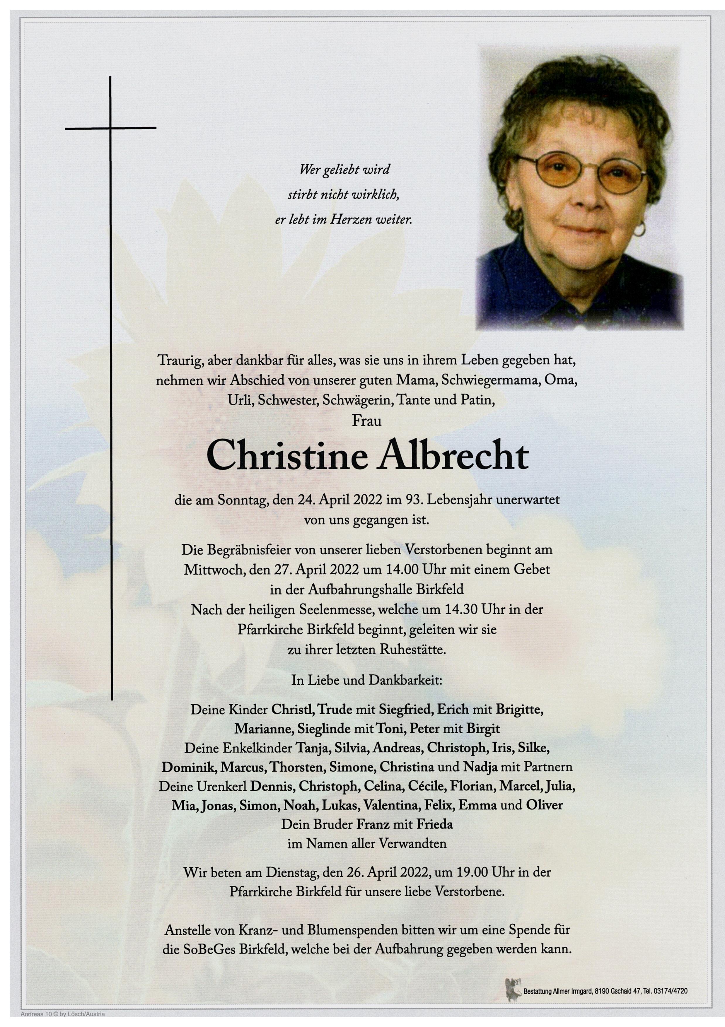 Liebe Christine ein Licht für deine letzte Reise herzliche Anteilnahme Familie Wagner