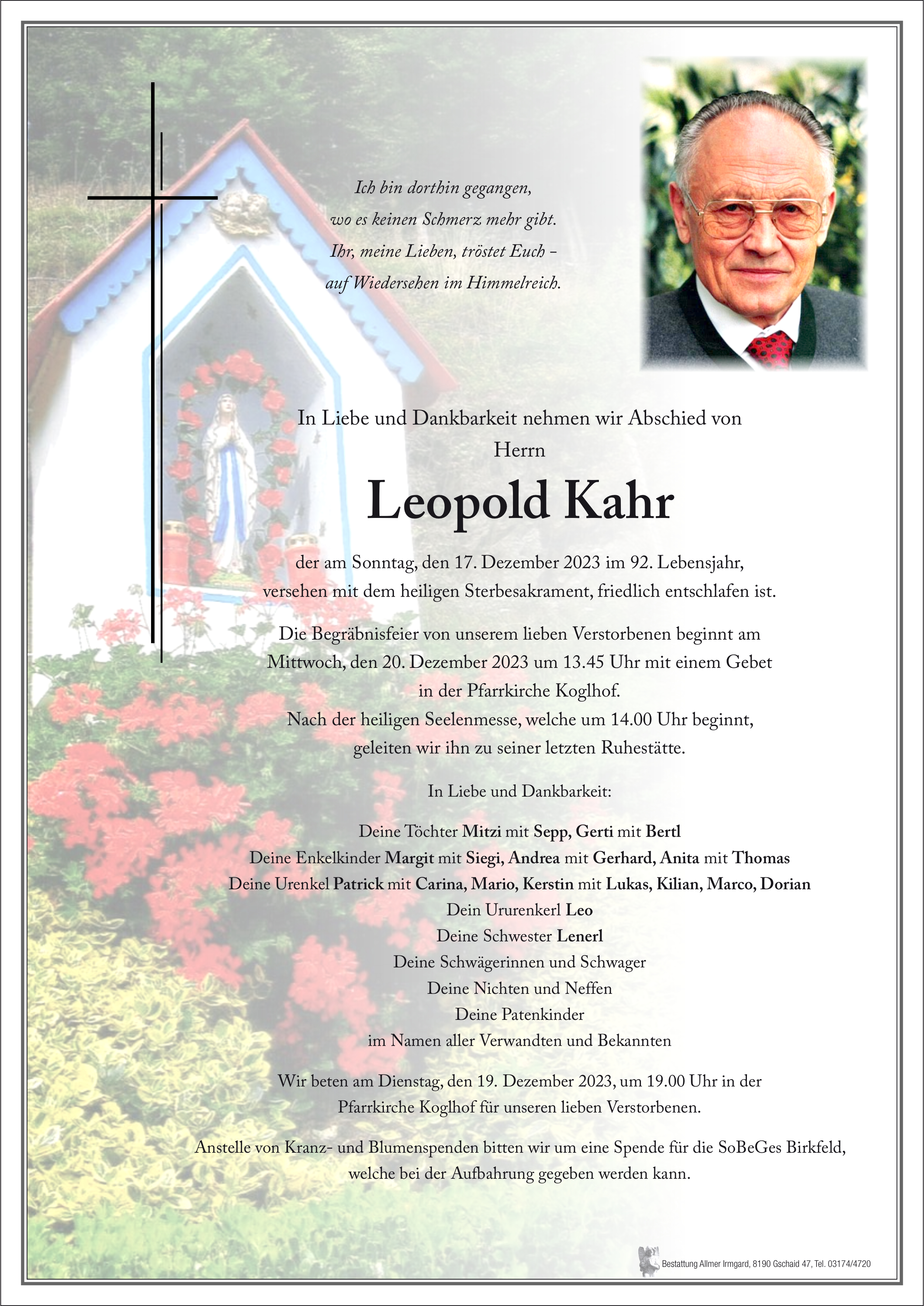 Lieber Poldl ein Licht für deine Reise nun bist du wieder mit deiner lieben Frau vereint.Als sehr herzlichen Mensch werden wir dich in Erinnerung behalten Aufrichtige Anteilnahme für deine gesamte Familie.Frieda Höfler mit Familie.🕯