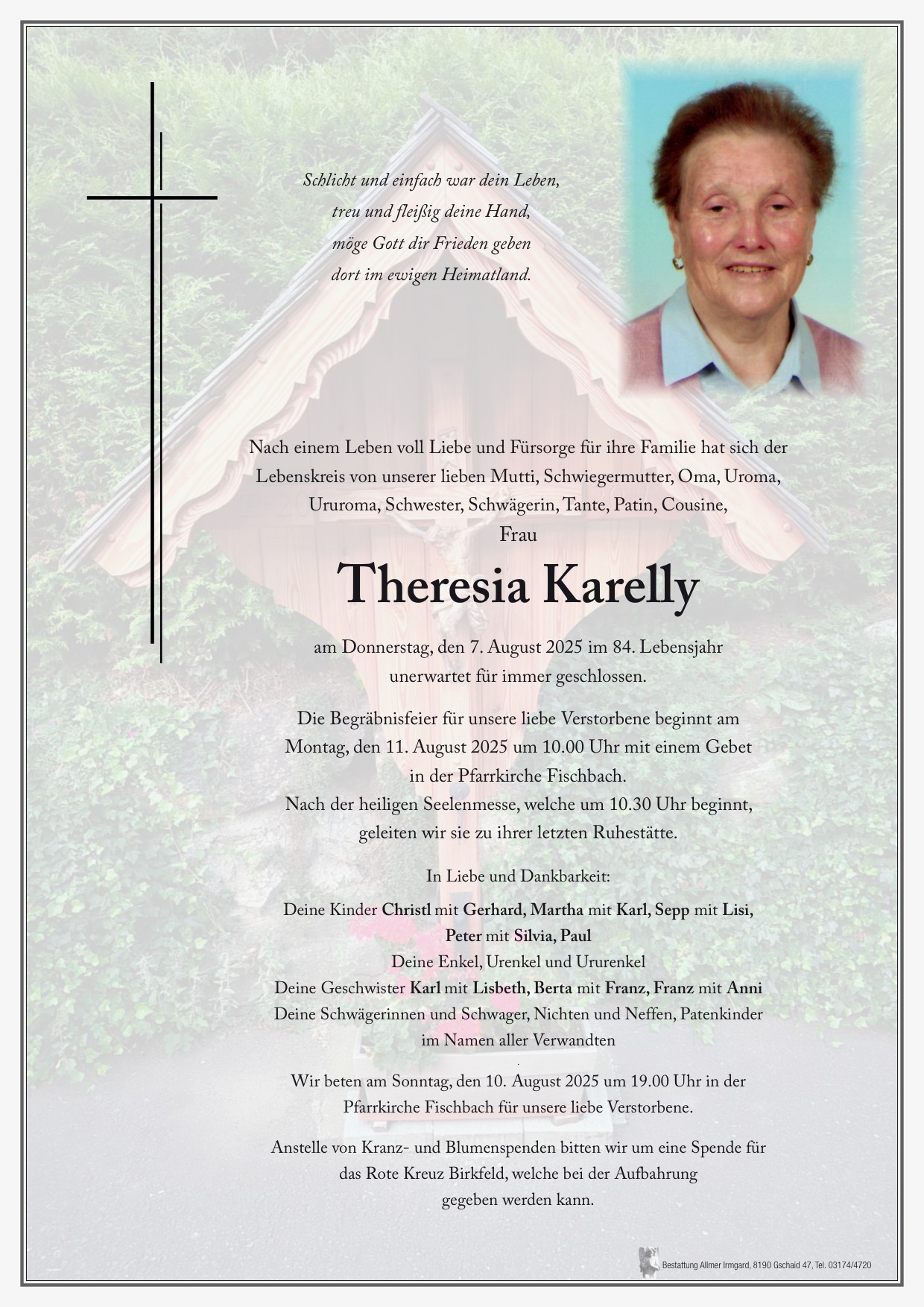 Ruhe in Frieden liebe Reserl ❤️ Aufrichtiges Beileid allen Hinterbliebenen! 🥀 Anja Grabenhofer & Familie