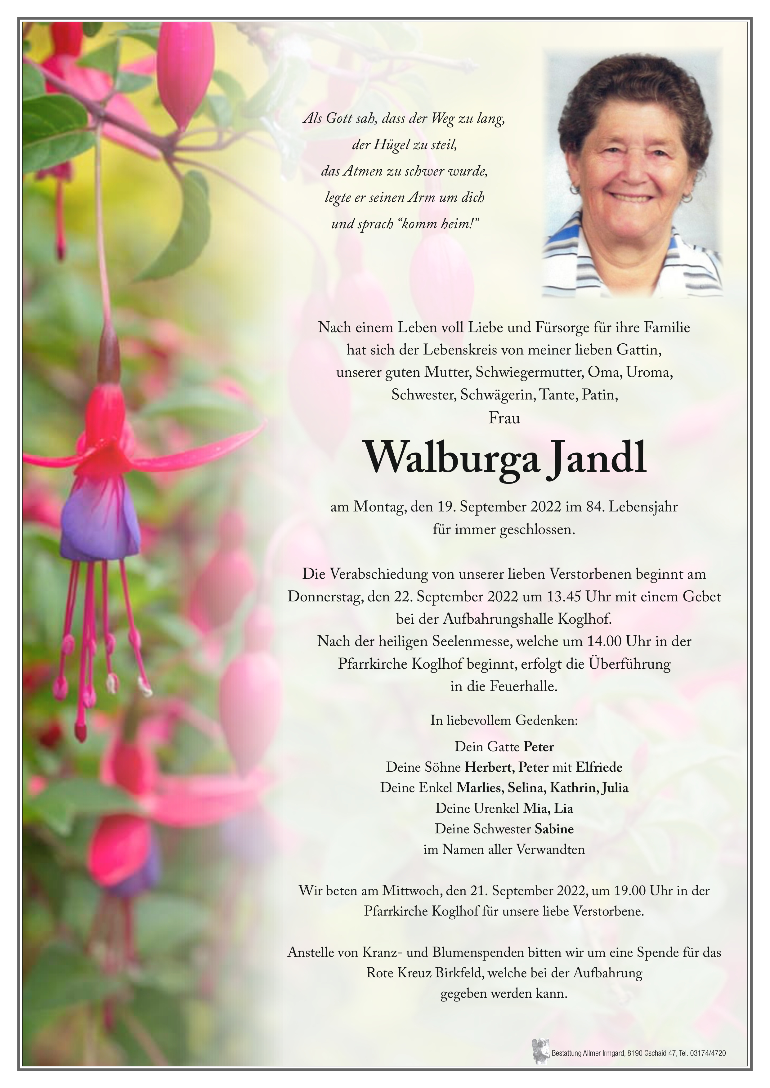 In stillen Gedenken Liebe Burgi Monika und Siegfried Derler