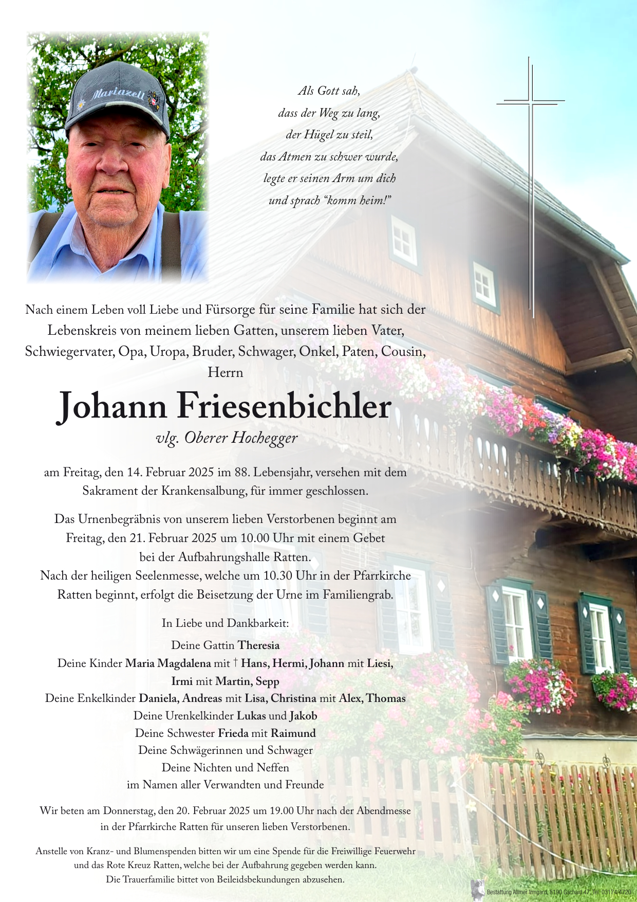 Ruhe in Frieden lieber Johann.Unser innigstes Beileid Gerhard und Rosina Zisser