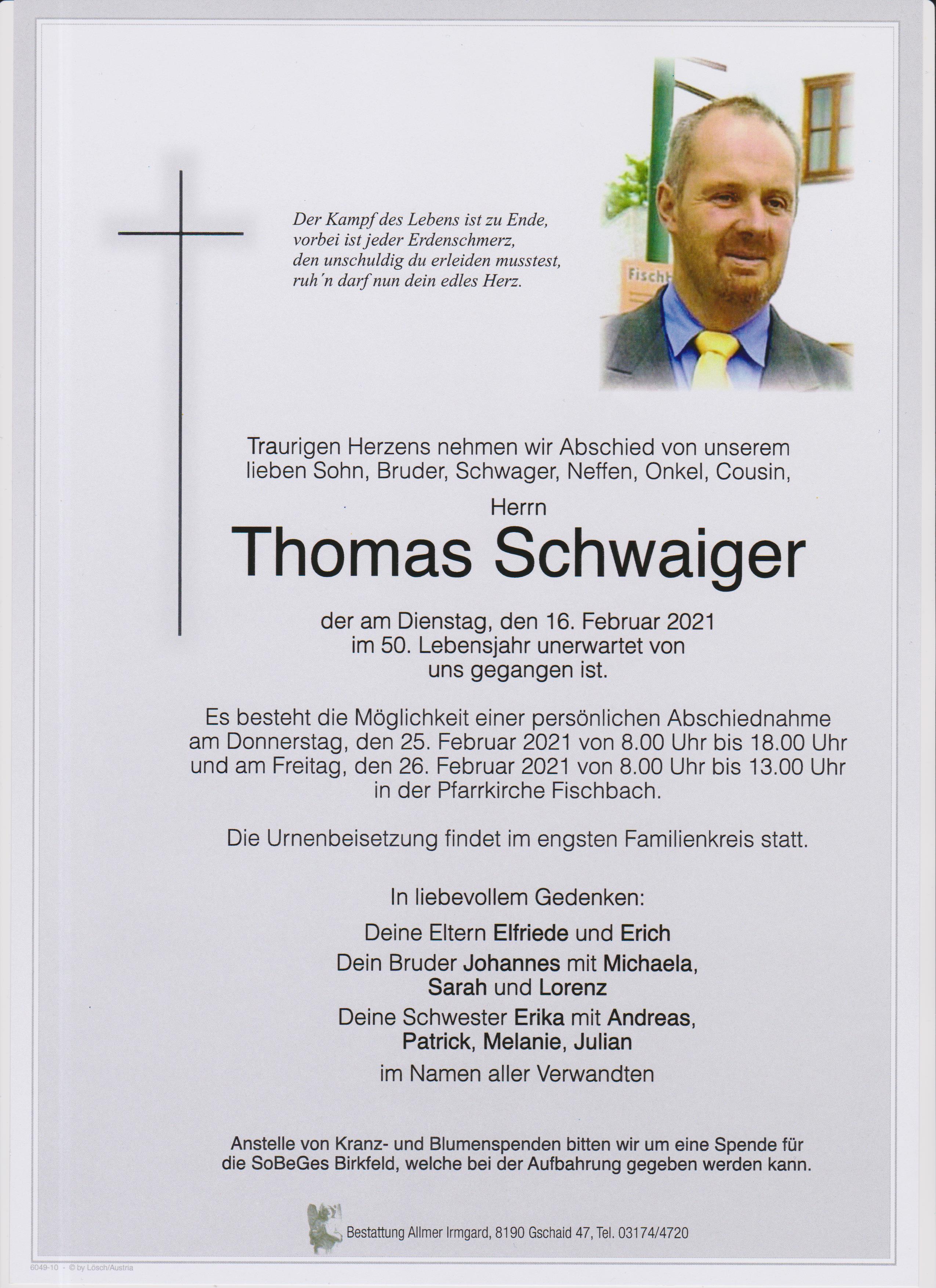Ruhe in Frieden Thomas Eine Schulkollegin aus Gasen