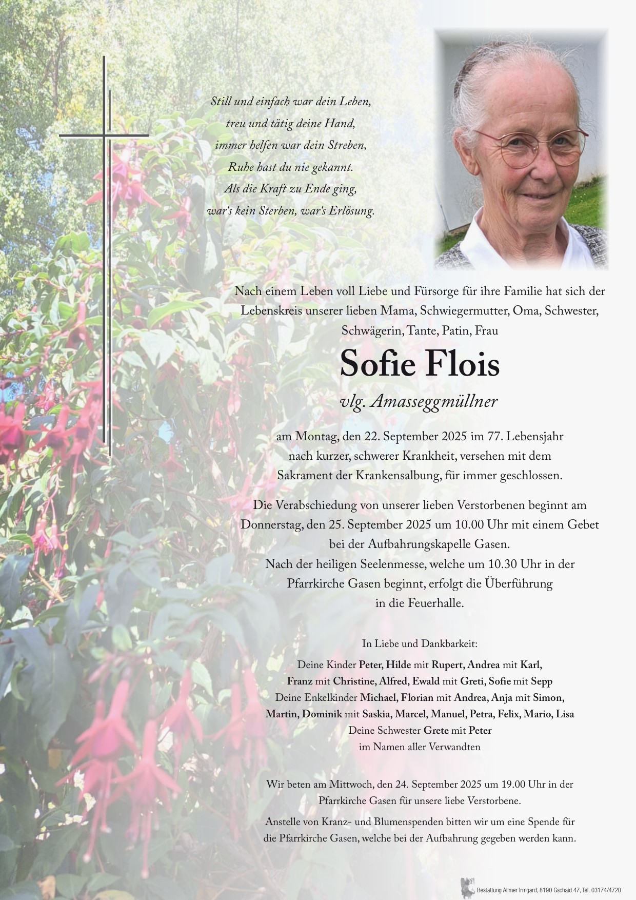Mein herzliches Beileid der ganzen Familie,ein🕯fuer ihre letzte Reise liebe Frau Flois 🙏🤍Astrid Schwaiger/Furfari