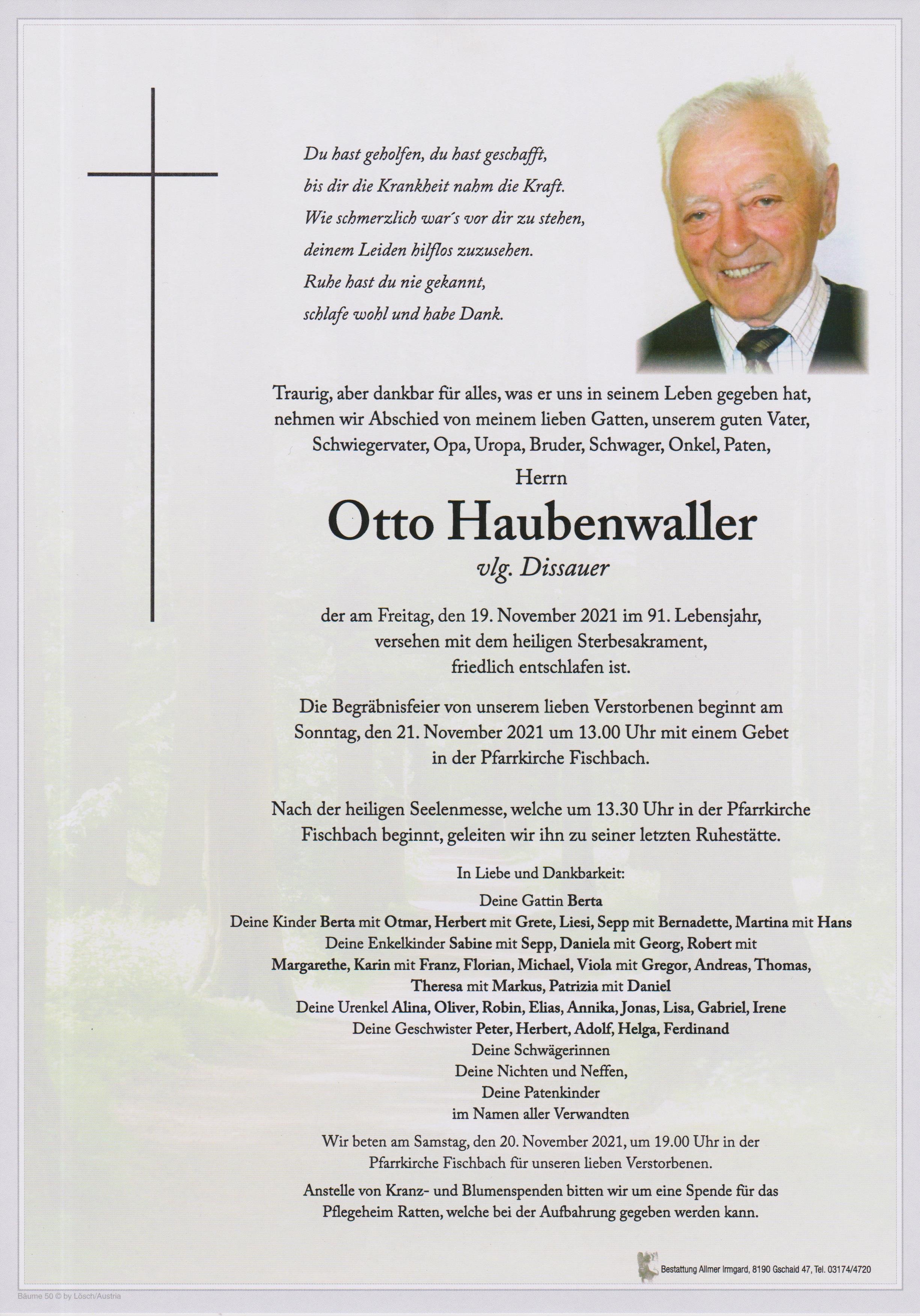 Ruhe in Frieden lieber Dissaueropa. Unser herzliches Beileid der ganzen Familie. Franz, Karoline, Lena und Maria