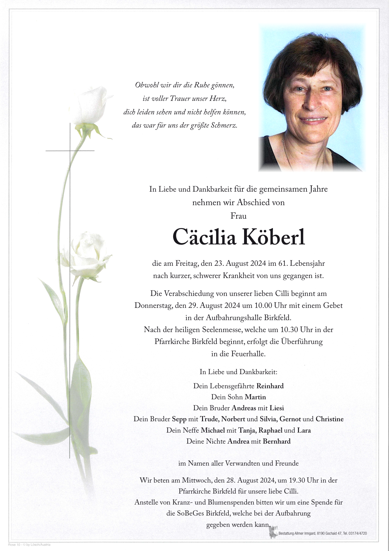 Unser Aufrichtiges Beileid . Ruhe in Frieden . Josefine und Erika Holzer mit Fam.