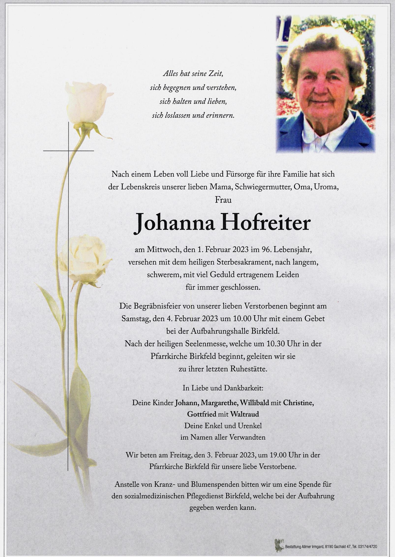 In Lieben Gedenken Fam. Mauerhofer Frieda